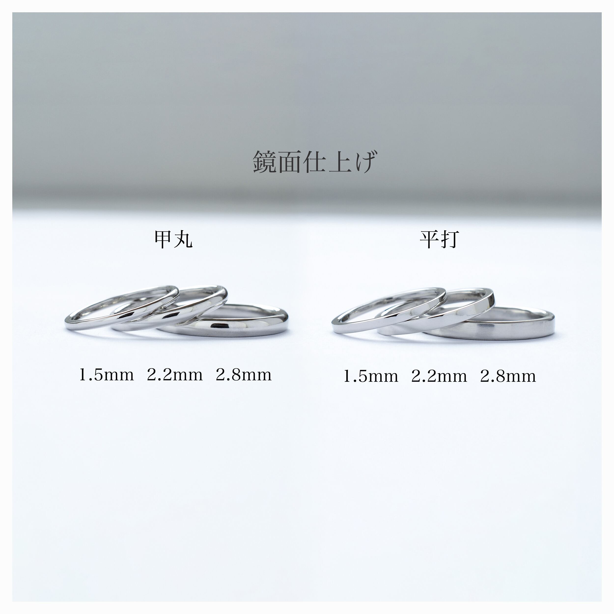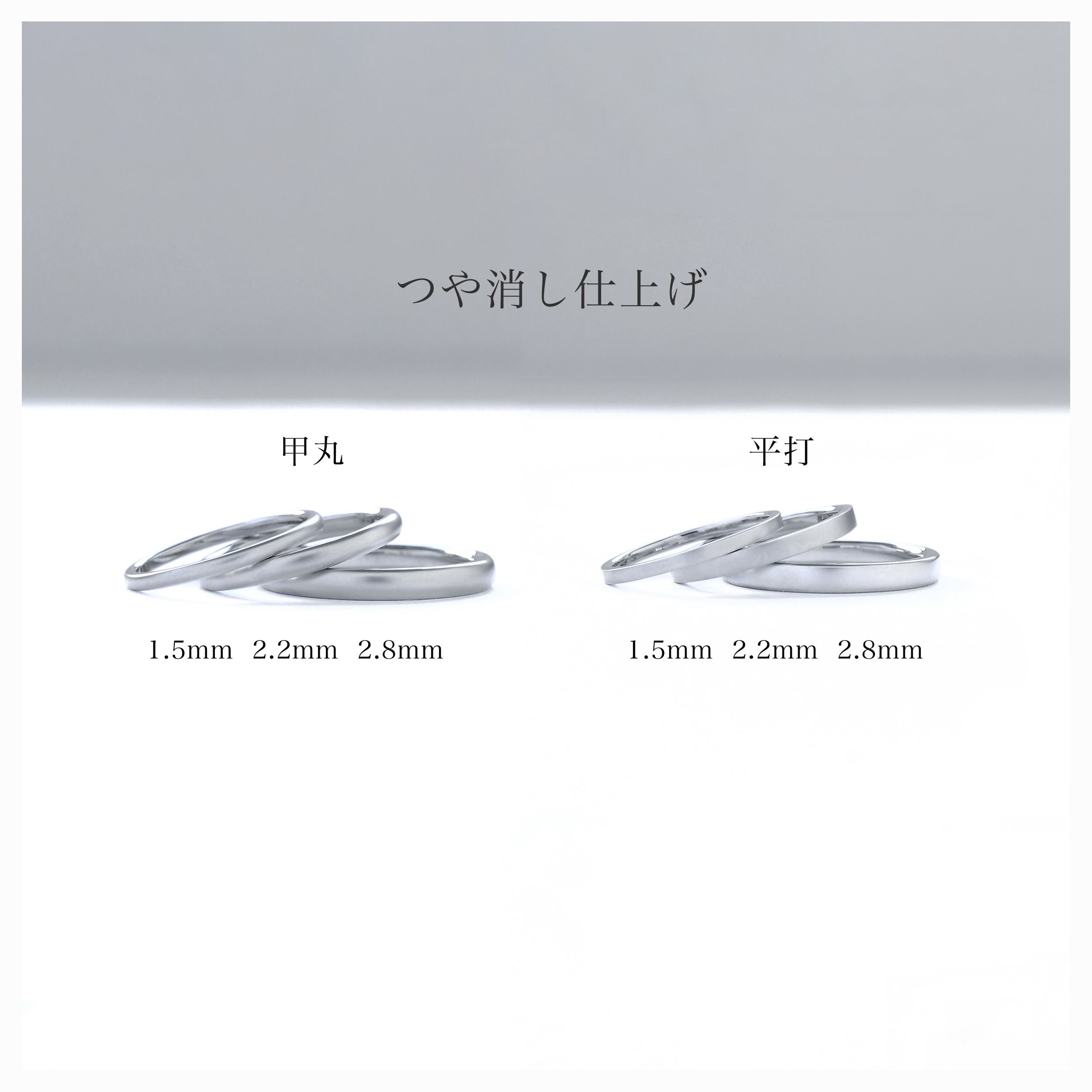 叩き、削り、磨く工程を重ねることで、金属の密度が高まり、傷がつきにくく歪みにくい指輪に。手に取ったときの重みや、なめらかな指通りには、手仕事ならではの確かな違いが表れます。
